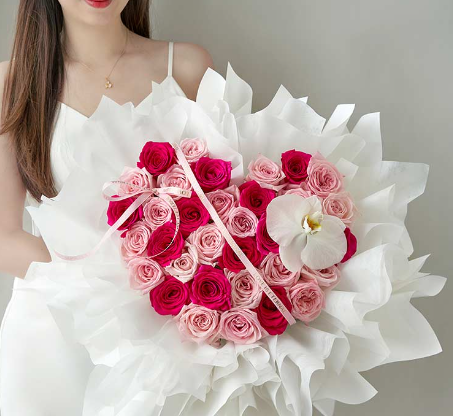 [心形设计定制特惠款] 弗洛伊德玫瑰13枝,粉色玫瑰20枝,白色蝴蝶兰1朵
